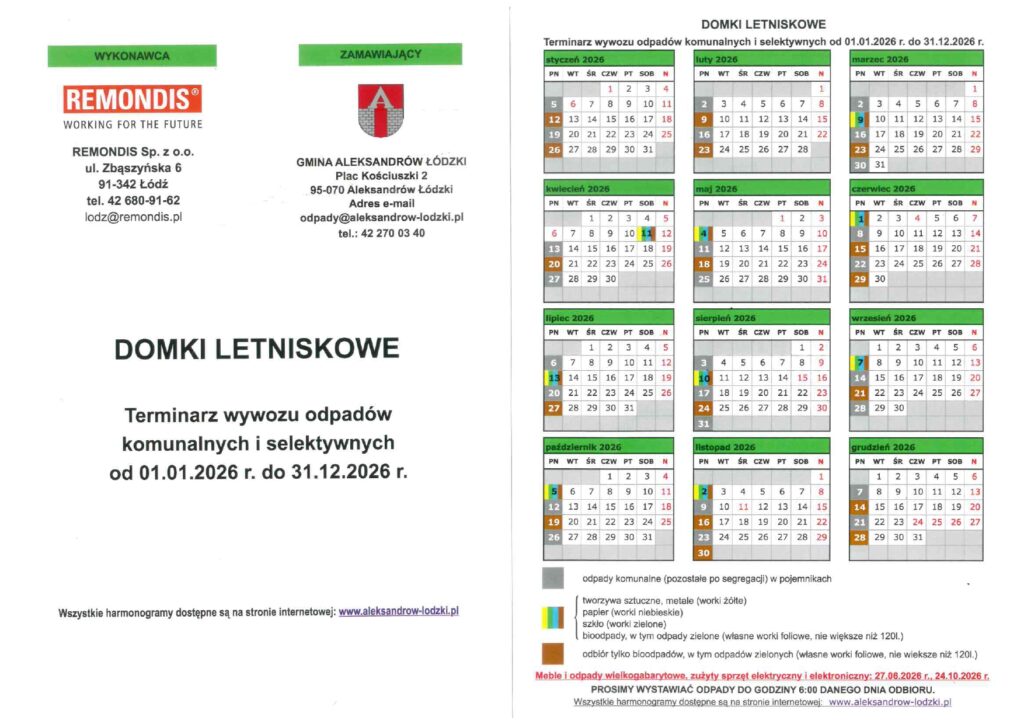 Harmonogramy odbioru odpadów – domki letniskowe 2025