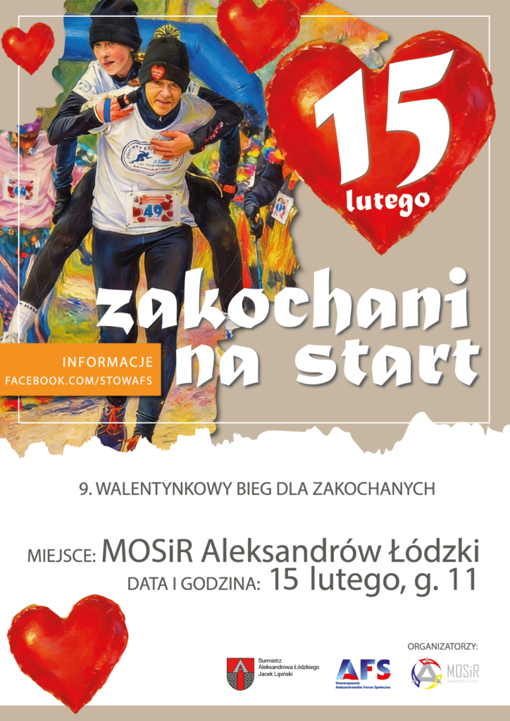 Już 15 lutego 2026 r. zapraszamy Was na 9. Bieg/ Marsz Walentynkowy „Zakochani na start” w Aleksandrowie Łódzkim!