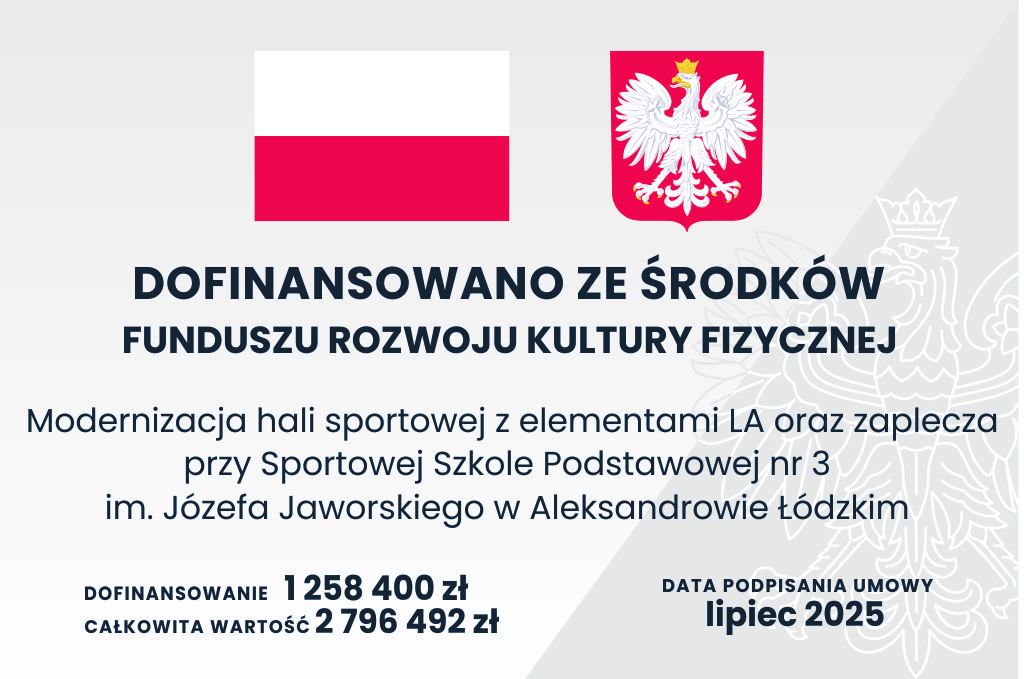 „Modernizacja hali sportowej z elementami LA oraz zaplecza przy Sportowej Szkole Podstawowej nr 3 im. Józefa Jaworskiego w Aleksandrowie Łódzkim”