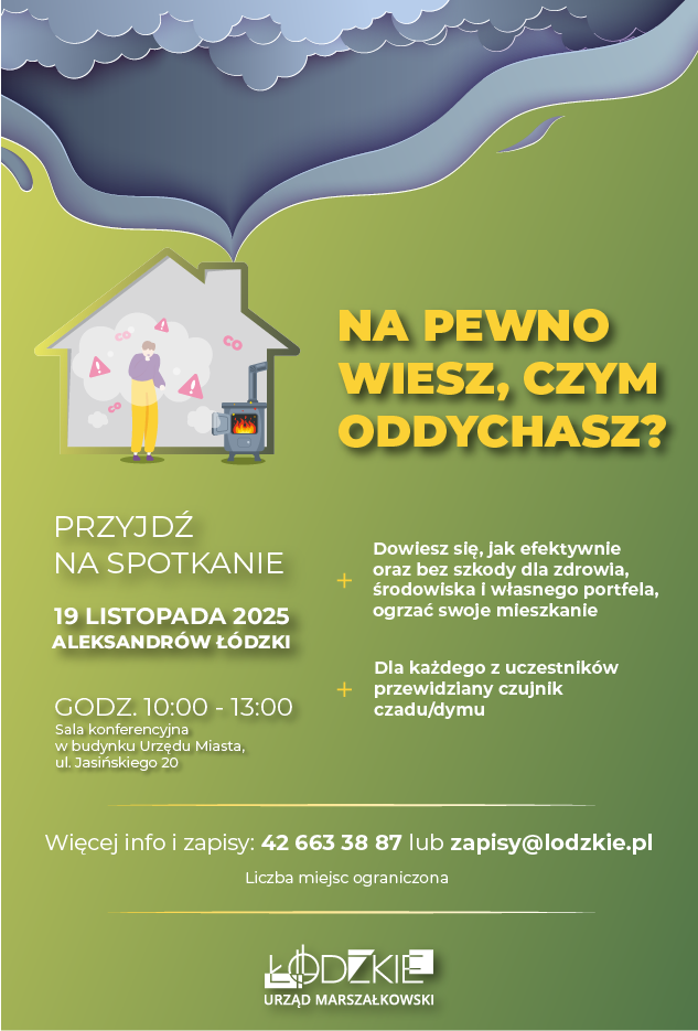 Departament Promocji Urzędu Marszałkowskiego Województwa Łódzkiego realizuje cykl trzech spotkań prelekcyjno-edukacyjnych dla mieszkańców województwa łódzkiego, poświęconych tematyce bezpiecznego ogrzewania budynków oraz ochrony jakości powietrza w okresie grzewczym.