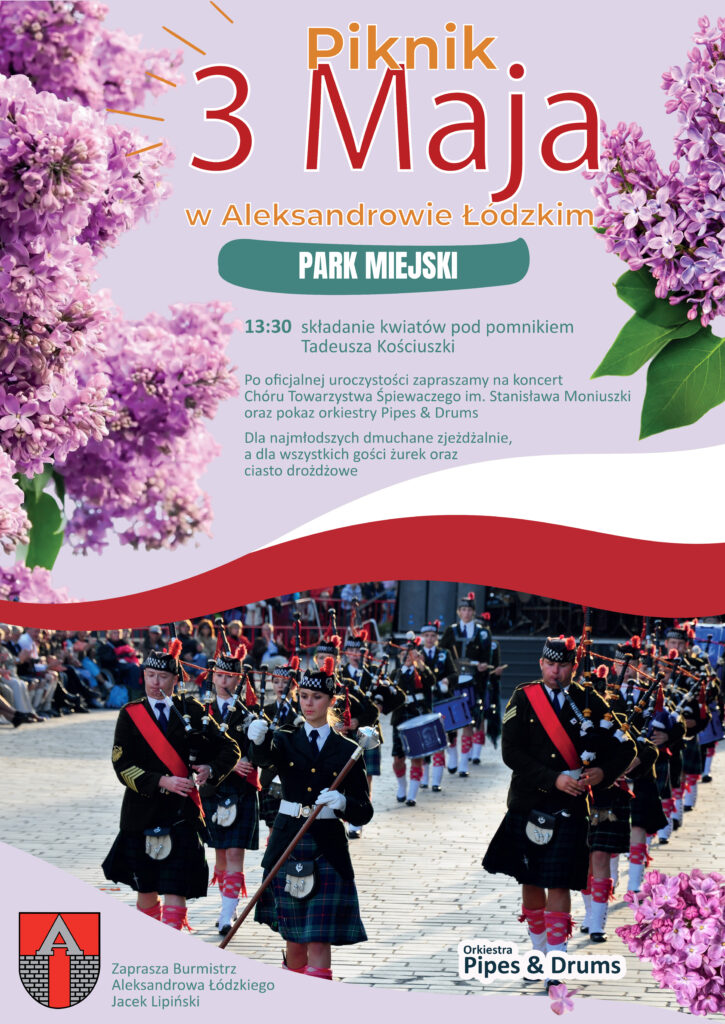 W mieniu Jacka Lipińskiego, Burmistrza Aleksandrowa Łódzkiego, serdecznie zapraszamy na Piknik Trzeciomajowy w Aleksandrowie Łódzkim. Obchody Święta Konstytucji rozpoczną się w niedzielę 3 maja, o godz. 13.30 na głównym placu w parku miejskim.