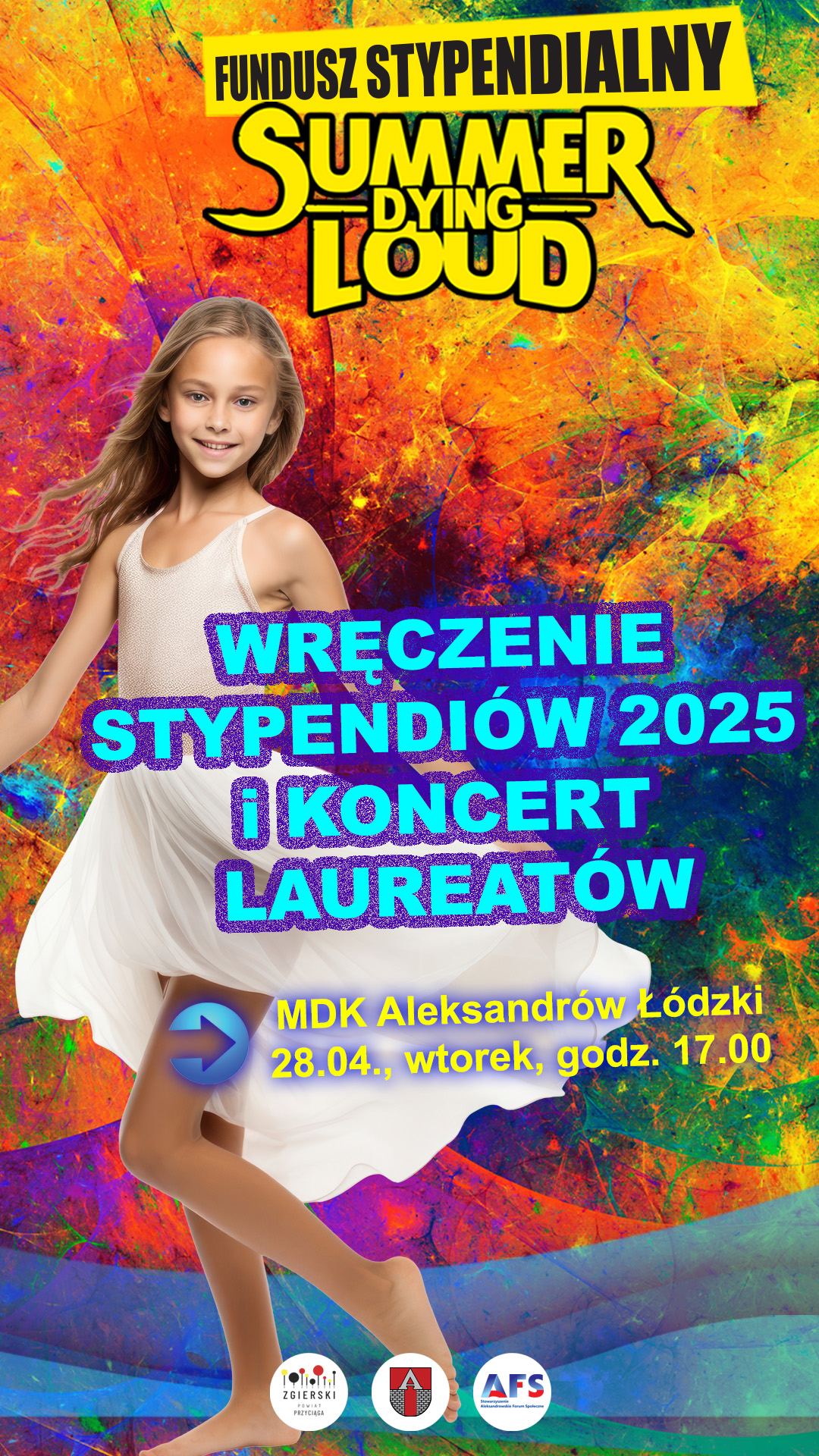 Sześćdziesięcioro troje uzdolnionych artystycznie dzieci z Gminy Aleksandrów Łódzki otrzyma stypendia Summer Dying Loud za rok 2025. To szansa na dalszy rozwój młodych twórców, ale i możliwość dalszego budowania lokalnego środowiska, w którym talent jest dostrzegany, wspierany i rozwijany. Na uroczyste wręczenie stypendiów, połączone z koncertem laureatów, zapraszamy we wtorek, 28 kwietnia, o godz. 17.00 do sali widowiskowej Miejskiego Domu Kultury w Aleksandrowie Łódzkim.